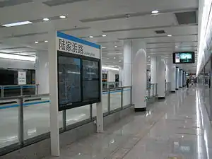Lujiabang Road (simplified Chinese: 陆家浜路; traditional Chinese: 陸家浜路; pinyin: Lùjiābāng Lù) is the name of an interchange station between Lines 8 and 9 on the Shanghai Metro network. It began operation on 29 December 2007 with the opening of line 8. It became an interchange station on 31 December 2009 with the opening of line 9.