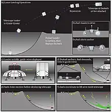 - ↑ "A Concept for the Deployment of a Large Lunar Crater Radio Telescope Using Teams of Tethered Robots". 8 February 2022.