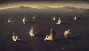 Lunatics is a 2002 oil on canvas painting by the Norwegian painter Odd Nerdrum. It depicts a barren landscape with a number of nude or semi-nude people wearing headgears such as crowns and helmets. In their 2014 catalogue note, Sotheby's described the painting as "a quintessential example of Nerdrum's large-scale allegories, presenting a sense of the apocalyptic".[1]