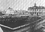 After the county academy was destroyed by fire in 1893, the town of Lunenburg set out to create a new building which would be "an ornament to the town and a credit to the Province".[1] As the old academy, which housed only 200 students, had reached its capacity, the new building was planned to be much larger.[2]: 11 Construction of the Lunenburg Academy, directed by architect Harry H. Mott, began in the fall of 1894 and was completed in 1895. The school opened on November 7, 1895, admitting more than 650 students.[3] The academy served as a primary and secondary school for students in Lunenburg County until 1966, when it became strictly a school for grades primary to nine. It continued to operate as a school until March 2012, when concerns over maintenance costs led the school board to cede operations to the town.[2]: 13–4 The Lunenburg Academy was designated a National Historic Site in 1983, owing to its architectural heritage and its illustration of the 19th century academy system in Nova Scotia.[4]