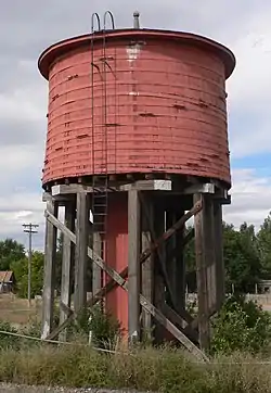 The Lusk Water Tower was built in 1886 to provide water for steam locomotives on the former Fremont, Elkhorn and Missouri Valley Railroad, at Lusk, Wyoming. Lusk itself was built by the railroad at the same time. The tank was originally located in the middle of Lusk near the railroad depot and was moved in 1919 to the present site on the east edge of town, adjacent to what became the Chicago and North Western Transportation Company line now owned by Union Pacific.[2]