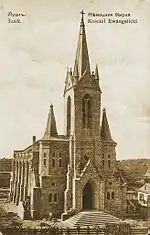 Initially, Lutsk and Torchyn competed to have the new church. Although Torchyn had hundreds of Germans, the church administration preferred Lutsk as it was closer to the administrative institutions and to the railway. Construction of church to the design of architect Christian Beutelspacher began on 25 June 1905 in the idiom of Gothic Revival architecture. With the help of members of the Lutheran community, the building was completed 15 months later.