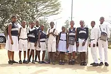 Some Lutheran High School, Obot Idim, students gather near their school's entrance to welcome guests, 25 February 2022