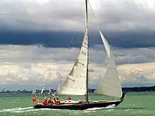 A Laurent-Giles designed Bermudan yawl, built by Camper and Nicholsons in 1952 with yard number 784, she is 58 ft length overall with an 8.5' draft.[1] Now renamed Lutine of Helford. In 2014 Lutine I was listed for sale with an asking price of £339,000; the listing describes her as having been found "derelict" in 1999 and having undergone a complete rebuild before relaunch in 2001. She was evidently restored to excellent condition, and sold within a few months.[2] A model is displayed in the Lloyd's Register of Shipping offices in Southampton having been loaned by the LLYC Commodore.