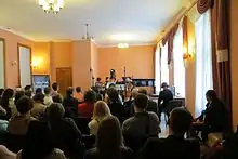 In the postwar period, the building housed the concert hall of the Lysenko Conservatory[8] and since the 1940s it has been home to the Lviv Regional Philharmonic. The Philharmonic building is listed in the Register of Architectural Monuments of Local Significance under protection number 374-m.[9]