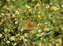 Rauparaha's copper butterfly on Muehlenbeckia complexa