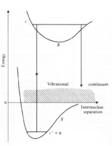 - 10–15% of the decays occur into the vibrational continuum. This means that the hydrogen molecule has dissociated.
