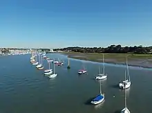 In 1731 a merchant navy captain, Captain Cross, constructed a causeway and bridge across the estuary to the north of Lymington.[1] He built toll houses and charged travellers using his causeway, more than a mile south of the existing bridge at Boldre.[2] This impedes the river and further silted up Lymington harbour, losing its minor shipping rapidly.[2] Lymington Corporation pursued the matter in court and lost their case.[2]
