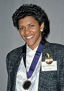 Lynette Woodard (born August 12, 1959) is a retired American basketball Hall of Fame player and former head women's basketball coach at Winthrop University. Woodard made history by becoming the first female member of the Harlem Globetrotters and who, at age 38, began playing as one of the oldest members in the newly formed American women's professional basketball league, the WNBA.