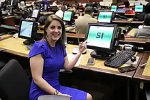 In June 2022 she was among the members who requested a debate concerning the replacement of President Guillermo Lasso. Forty-six other members signed the request including Sofía Espín, Jhajaira Urresta, Patricia Mendoza, Victoria Desintonio, Viviana Veloz and Rosa Mayorga.[4] Lasso brought in the constitution clause number 148 known as Mutual death in May 2023 when he knew that he was about to be impeached. This required all of the National Assembly members to stand for re-election. She stood for re-election[5] and was re-elected to the National Assembly. She represents Ecuadorians living in the US and Canada.[5] She is a member of the Permanent Commission on Food Sovereignty and Development of the Agricultural and Fishing Sector.[6]