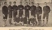 The club was founded as Műegyetemi Football Csapat (MFC - Technical University Football Club) by the students of the Budapest Technical University, Alfréd Hajós and Ferenc Gillemot, on the 1st of November 1897.[2] At the time MFC started operating as the second, independent university sports club in the country.[3] Students have considered the club an integral part of the university since its inception, and this fact has been consistently expressed in the name and regulations of the club. The first statute, adopted in 1900, set the goal of spreading and cultivating exercise. It took part in the first official football match between different clubs to be played in Hungary, on the 6th of February 1898, when it won against Budapesti TC 5-0, despite BTC having trained the MFC players in the prior months.[4] The club soon also became involved in athletics, and in 1903 it became known as the Technical University Athletics and Football Club, Műegyetemi Atlétikai és Football Club. It was one of the founders of the Hungarian football league and played in the first season of the Hungarian League in 1901, and it finished third.[5]