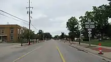 Past the Cadillac area, M-115 runs through the northeastern corner of the Manistee National Forest.[5] The highway continues through woodlands, passing several small lakes in the area as it approaches the community of Mesick. There it turns due west and joins M-37 through town. After M-37 separates to the south, M-115 crosses the Manistee River and continues its northwestern course. The highway crosses the northeastern corner of Manistee County and runs through the community of Copemish on the way to Benzonia. The landscape here turns more agricultural as the highway skirts southwest of Thompsonville crossing the Betsie River.[3][4]