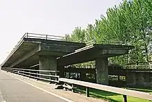 Several incomplete structures were built around the motorway - at least 3 have been demolished or reused from the 1960s dubbed Bridges to Nowhere. A few incomplete structures remain.