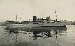 In 1929–1931 Ciudad de Barcelona offered cruises from Barcelona. 1931–1936 she sailed between the Balearic and Canary Islands with stops in Cadiz, Santa Cruz de La Palma, Santa Cruz de Tenerife and Las Palmas.[3] Since the beginning of the Spanish Civil War in July 1936, the ship was used to land troops at Ibiza and in the failed Invasion of Mallorca. In October 1936 Ciudad De Barcelona sailed to the Soviet Black Sea ports and made voyages to Marseille and Algiers to transport International Brigade volunteers to Spain.[1]