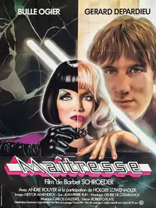 Maîtresse (French for "mistress" or "teacher") is a 1975 French sex comedy film co-written and directed by Barbet Schroeder, starring Bulle Ogier and, in one of his earliest leading roles, Gérard Depardieu. The film provoked controversy in the United Kingdom and the United States due to its graphic depictions of BDSM.