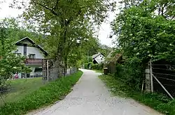The local church, dedicated to Saint Anne, was built on the top of Hunter's Peak (Slovene: Lovski vrh, German: Annaberg 'Mount Saint Anne'[14]:193) north of the settlement. It is also a site of a prehistoric Iron Age settlement. The pilgrimage church, a 16th-century building that survived the Second World War, was demolished in 1953 or 1954.[16] A chapel-shrine dedicated to Saint Anne was erected next to the site of the former church in 2003.[14]:193