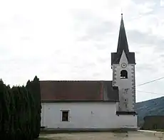 The local church is dedicated to Saint John the Evangelist and belongs to the Parish of Žužemberk. It is a medieval building that was restyled in the Baroque style in the 18th century.[6]