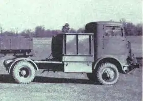 The design was a militarized version of a civilian Cab Over Engine (COE) model, partly redesigned to make it 4WD. A Mack engine and transmission were matched with a Timken 2-speed transfer case and double-reduction axles. The EN532 engine was a 532 cu in (8.7 L) L-head inline 6 cylinder gasoline engine developing 136 hp (101 kW) at 2500 rpm. The 5-speed transmission drove the separate transfer case.[3]