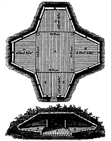The ice on Great Bear Lake began breaking up on 23 May, but with this came the constant threat of mosquitoes, which Franklin called "vigorous and tormenting".[14] As winter ended, the party made a more concentrated effort to chart the coastline of Great Bear Lake. The most extensive of these explorations was conducted by Richardson and Kendall, lasting from 10 April–1 May. Franklin at this point grew displeased with the constant presence of the Dog-Rib Indians, claiming that they "continued hanging about the fort, and their daily drumming and singing over the sick, the squalling of the children, and bawling of the men and women, proved no small annoyance."[14] With the beginning of June, Franklin began more intensely planning the party's voyage to the coast. The boats the company had been constructing over the course of the winter were tested on 15 June. Supplies and men were then divided between the western and eastern detachment, and after final preparations were made, the party departed from Fort Franklin on the summer solstice of 1826.