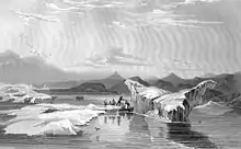 The Northwest Passage, a supposed sea route to the Pacific Ocean by way of the Arctic Ocean, had long been sought by European explorers as a possible trade route to East Asia and the East Indies. During the Age of Exploration, the presupposed existence of the passage motivated much of European exploration in North America. Beginning in the early 19th century, the Royal Navy, having expanded to unprecedented proportions during the Napoleonic Wars, turned much of its attention to the passage's discovery.[3] Under the influence of Sir John Barrow, the Royal Navy sponsored many Arctic expeditions, including those led by John Ross, William Edward Parry, James Clark Ross, and John Franklin. For the next fifty years, the Royal Navy dominated the Arctic seas.[4]