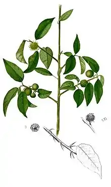 Maclura cochinchinensis, commonly known as cockspur thorn, is a species of vine or scrambling shrub in the family Moraceae. The native range extends from China, through Malesia and into Queensland and northern New South Wales.[1] The species inhabits various types of tropical forest: most commonly in monsoon forests.[2] The globular, yellow or orange fruit are sweet and edible and were a traditional food source for Australian Aborigines.[3]