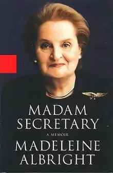 Madam Secretary: A Memoir is the autobiography of United States Secretary of State Madeleine Albright, published in 2003.[1][2] It covers both her life and the eight years she spent in the Clinton administration, first as United States Ambassador to the United Nations and then as head of the State Department. The book's title reflects the term of address for a female governmental secretary. Madam Secretary appeared on The New York Times Best Seller list.
