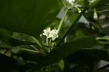 Close-up photograph of a typical Madame Jeanette (Capsicum chinense) flower