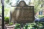 In the center of the square is the William Jasper Monument, an 1888 work by Alexander Doyle memorializing Sergeant William Jasper, a soldier in the siege of Savannah who, though mortally wounded, heroically recovered his company's banner.[2] Savannahians sometimes refer to this as Jasper Square, in honor of Jasper's statue.[3]