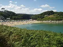 Maenporth (Cornish: Meyn Borth, meaning stones cove) is a cove and beach in west Cornwall, England. It is situated approximately two miles (3 km) south-southwest of Falmouth on the estuary of the River Fal.[1]