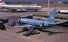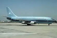 Maersk Air took delivery of its first two Boeing 737-200 Advanced in 1976.[16] By 1981 the airline had taken delivery of fourteen aircraft. Some were leased to other carriers, including Guyana Airways, Malaysia Airlines and Tunisair.[17] Others were used charter services, mostly to Danish inclusive tour operators. From 1983 three aircraft were entirely dedicated to this task. This was a highly competitive market, where Maersk had to compete with Conair, Sterling and Scanair, amongst others.[18]