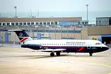 Maersk Air also decided to enter the British market. It bought part of the Plimsoll Line, which again bought Birmingham Executive Airways (BEA) and Brymon Airways.[36] After a merger into Brymon European Airways and subsequent demerger, Maersk Air UK was founded on the foundations of BEA. It operated a series of international and domestic services out of Birmingham Airport, initially with a fleet of three Jetstream 31 and three BAC One-Elevens.[37] Maersk signed a franchise agreement in which Maersk Air UK would fly with British Airways livery and flight codes, but at their own expense and their own aircraft and crew.[38] The 1-11s were replaced with Boeing 737-500s in 1996.[39] Bombardier CRJ200s were introduced two years later.[40]