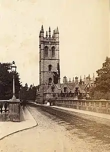 - ↑ The foundation stone was laid by Dr. Mayew, President, 9 August 1492 (John Chessell Buckler, Observations on the Original Architecture of Saint Mary Magdalen College, Oxford, 1823:29).