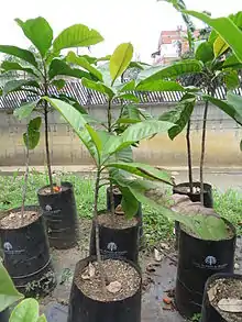 This tree can reach a height of up to 25 m and up to 60 cm in diameter. The bark is grey coloured with dark streaks. Young leaves have a woolly and golden pubescence. Leaves are spiralled, elliptic and chartaceous, 15.3 cm to 34 cm in length and 10.6 to 21.4 cm in width. They have a dense, golden pubescence on the underside, with a petiole streaked longitudinally. Flowers are cream-coloured, with a floral bud with three pubescent bracts, three sepals and eight pulpy petals. Fruits are small and elliptical.[2][3][4]