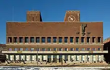 Magnus Poulsson is most famous for designing the Oslo City Hall, together with Arnstein Arneberg.[1] He is also known for his work on Bærum City Hall (Bærum Rådhus) in Sandvika (1925 and 1958), KNA Hotel in Oslo (1931), Eystein church in Hjerkin and Haslum Chapel in Bærum. Poulsson's work also included private residences, office buildings, churches and interiors. Magnus Poulsson was particularly known for recreating the tradition of Norwegian folk wooden architecture.[2]