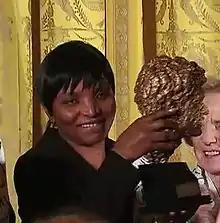 ![]() Magodonga Mahlangu of WOZA receiving Robert F Kennedy Human Rights Award from Obama in 2009 | |