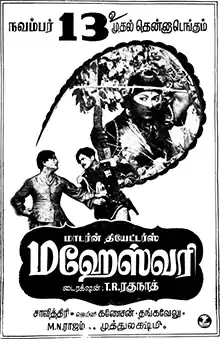 Maheswari is a 1955 Indian Tamil language film produced by Modern Theatres and directed by T. R. Raghunath. The film stars Gemini Ganesan and Savithri.[2] It was released on 13 November 1955.