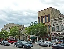 The district is made up of Jefferson's old downtown, including the 1860 Jefferson House hotel,[2] the 1869/1907 Neuer Saloon/Sample room,[3] the 1884 Italianate Beinfang Block,[4] the 1892 Queen Anne Fisher Building,[5] the 1896 Gothic Revival Stoppenbach Meat Market,[6] the eclectic 1902 Jefferson County Bank,[7] the 1911-12 Neoclassical Farmers & Merchants Bank,[8] the 1914 Craftsman-style C&NW Depot,[9] and the 1930 Art Deco Ziegler Garage.[10][11]