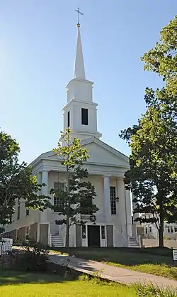 The Main Street Historic District of Westerly, Rhode Island, encompasses a predominantly residential section of Main Street and adjoining Maple Avenue and School Street. The district includes nineteen houses, which are predominantly Greek Revival, Italianate, and Second Empire in style, as well as the Pawcatuck Seventh Day Baptist Church, a Greek Revival structure built 1847–48.[2]