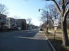 State Route 22 (SR 22) is a 19.4-mile (31.2 km) state highway located in southwestern Maine. It serves the western suburbs of Portland, running from SR 35 in Buxton east into the city, where it ends at SR 77.