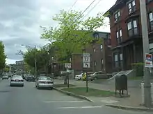 Upon entering Portland proper, SR 77 crosses over U.S. Route 1A (US 1A) with indirect access available via connecting streets. The highway splits into a one-way pair, High Street northbound and State Street southbound. The SR 77 designation continues north for another 0.9 miles (1.4 km) before terminating at Park Street. This intersection is the signed eastern terminus of SR 22, and administratively SR 25, although the latter is not signed.[2] In addition, the highway also passes Cumberland Avenue just to the south, the former southern terminus of SR 26. The one-way northbound alignment of SR 77 on High Street is not officially part of the route as designated, because State Street was formerly a two-way street (prior to the 1990s).