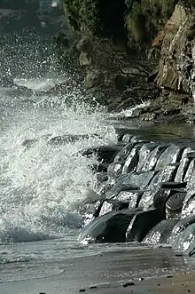 The land is primarily formed from clay and Waitemata sandstone, which can be seen in the cliffs along the coast.[6][7] Prior to human settlement, the inland Mairangi Bay area was primarily a northern broadleaf podocarp forest, dominated by tōtara, mataī, miro, kauri and kahikatea trees. Pōhutukawa trees were a major feature of the coastline.[8]