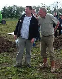 ![]() Pryor (right) discusses the excavation during the filming of a 2007 dig for Time Team with series editor Michael Douglas (left). | |
