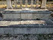 In accordance with Maurras' last wishes, his heart is separated from his body and buried in the garden of Martigues while his remains join his grave in Roquevaire.[9] The heart is placed in a carditaphe arranged below the "mur des Fastes", on the left in the garden of Martigues. During the final ceremony in the garden, the priest of Ferrières blesses the heart deposited, then Victor Rolland pays homage to the Martégal on behalf of the guild of fishermen of Martigues.[10]