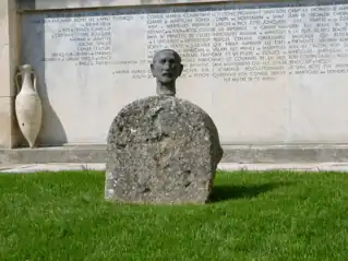 A bust of Charles Maurras made by the architect and sculptor Henry Bernard, Grand prix de Rome, is installed in front of "mur des Fastes". It rests on a merlon from the Greek wall or a fountain mascaron from the archaeological site of Saint-Blaise.[2]