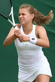 Chwalińska's profile received a boost in May when she played in the ITF tournament in Trnava, Slovakia. In her final round qualifying match against Irina Falconi, she produced an amazing "tweener" shot which clipped the top of the net and dropped into Falconi's side of the court for a winner which became an internet sensation.[4] Chwalińska went on to beat Falconi, and then the pair of them became part of a very unusual club when they met again in the first round proper. Chwalińska was originally drawn to meet Carol Zhao, who withdrew through injury and was replaced by Falconi as a lucky loser. In the rematch Chwalińska won again, but was beaten in the second round by Verónica Cepede Royg, a player ranked more than 500 places higher, and who went on to be the tournament runner-up.