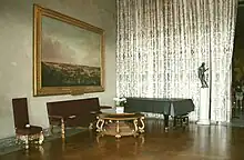 Further collaboration with Westman led to a commission for all the interior textile decorations for Stockholm's newly designed City Hall. This led to her spending two years in Venice at the Luigi Bevilacqua silk-weaving establishment where her large tapestry Festens genier (Angeli) and the silk works Hind och Örn (Cervo e Aquila) and Påfåglar (Pavoni) were produced.[1] These works still decorate the Council Chamber and the Three Crowns Chamber.[2]