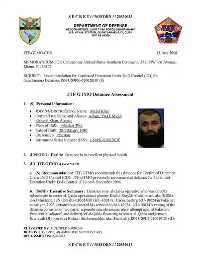 33. "Summary of Evidence for Combatant Status Review Tribunal — Khan, Majid" (PDF). OARDEC. March 28, 2007. Archived (PDF) from the original on June 13, 2007. Retrieved May 15, 2007.