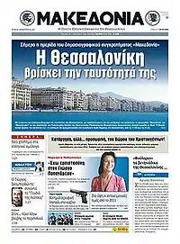 Makedonia (Macedonia, Greek: Μακεδονία) is a Greek daily newspaper published in Thessaloniki. Being one of the oldest newspapers in Greece, it was first published in 1911 by Konstantinos Vellidis. The present owner is the company Makedoniki Ekdotiki Ektipotiki AE. Currently, director of the newspaper is Dimitrios Gousidis, the 7th in the last 12 years. Previous directors were Lazaros Chatzinakos, Ioannis Kotofolos, Traianos Chatzidimitriou, Loukas Katsonis, Pantelis Savvidis and Kostas Zouraris.