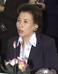 Makiko Tanaka (田中 眞紀子, Tanaka Makiko, born on 14 January 1944) is a Japanese politician. She is the daughter of former Prime Minister Kakuei Tanaka and his official wife Hana.