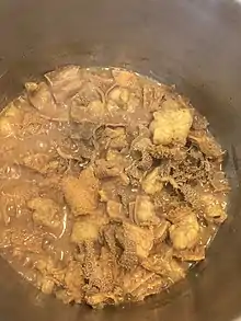 Mogodu is a Southern African food. Mogodu is a combination of chopped serobe (tripe) and mala (intestines) served as a stew often with hot pap or dumpling. Mala (in Setswana/Sotho) is the insides, usually of a mammal such as a cow or sheep.[1]